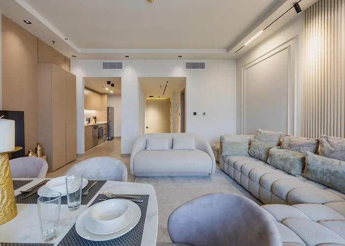 Dieses Apartment ist 7 km weit weg vom Aquaventure Waterpark, und der Bahnhof Business Bay ist in einer Entfernung von 31 km von der Unterkunft. Einkaufszentrum The Beach at JBR ist in 20 Gehminuten Entfernung von der Ferienwohnung Skyview Luxe 4Br - Elegant Sea & Ain Dubai View, während die Bushaltestelle Big 19 bayside in unmittelbarer Nähe von der Unterkunft ist. Die Unterkünfte liegt außerdem ungefähr 500 Meter vom The Walk at JBR entfernt.